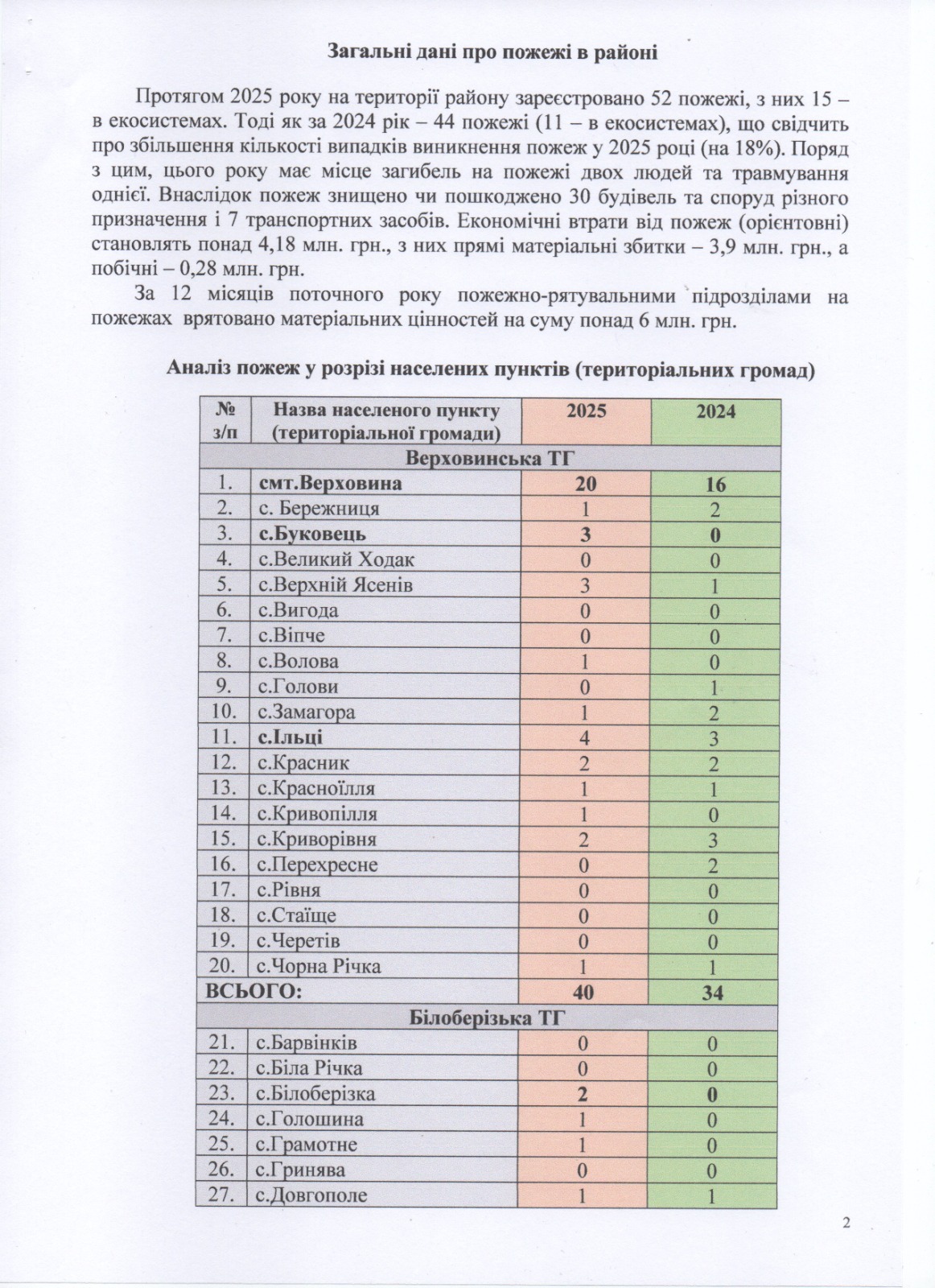 Загальні дані про пожежі в районі